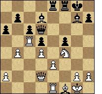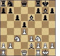21... f5! Надвижение пешек "f" и "g" с целью осуществления подрыва f5-f4, является основным методом контригры черных. 22. Кd3 g5 23. Лe1 Полезный профилактический ход в свете продвижения f5-f4. 23... Фd6 24. f4 Кажется, белые в корне препятствуют замыслам соперника и устанавливая контроль за черными полями, обрекают на бездействие слона d7. Однако.... 24... gf 25. Кf4