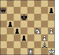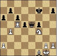По-видимому, издалека белые неточно оценили создавшееся положение. У них, конечно, более чем достаточная фигурная компенсация за ферзя, но выясняется неизбежность еще одной пешки на ферзевом фланге. 31. Кd3 Фd4 32. Крh1 Фa1 33. Крg1 Фa2 34. g3 Фd2 35. Лc1 Крe7 36. Лe1 Крd6 37. Лe5 a5! 38. ba c5 Армада проходных черных пешек приходит в движение, да еще при поддержке ферзя. Чувствуется, что белые фигуры не смогут оказать достаточного сопротивления "разбушевавшейся стихии".