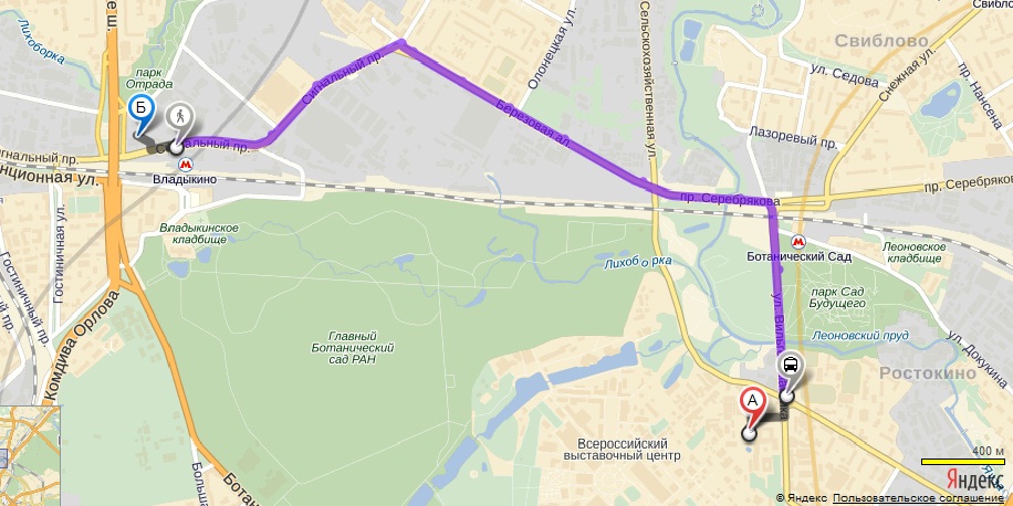 От гостиницы пройти до автобусной остановке метро «Владыкино», сесть на маршрутку 154м или 333м; или на автобус 33 или 154, выйти на остановке Гостиница «Байкал» (Сельскохозяйственная ул., 30К2).